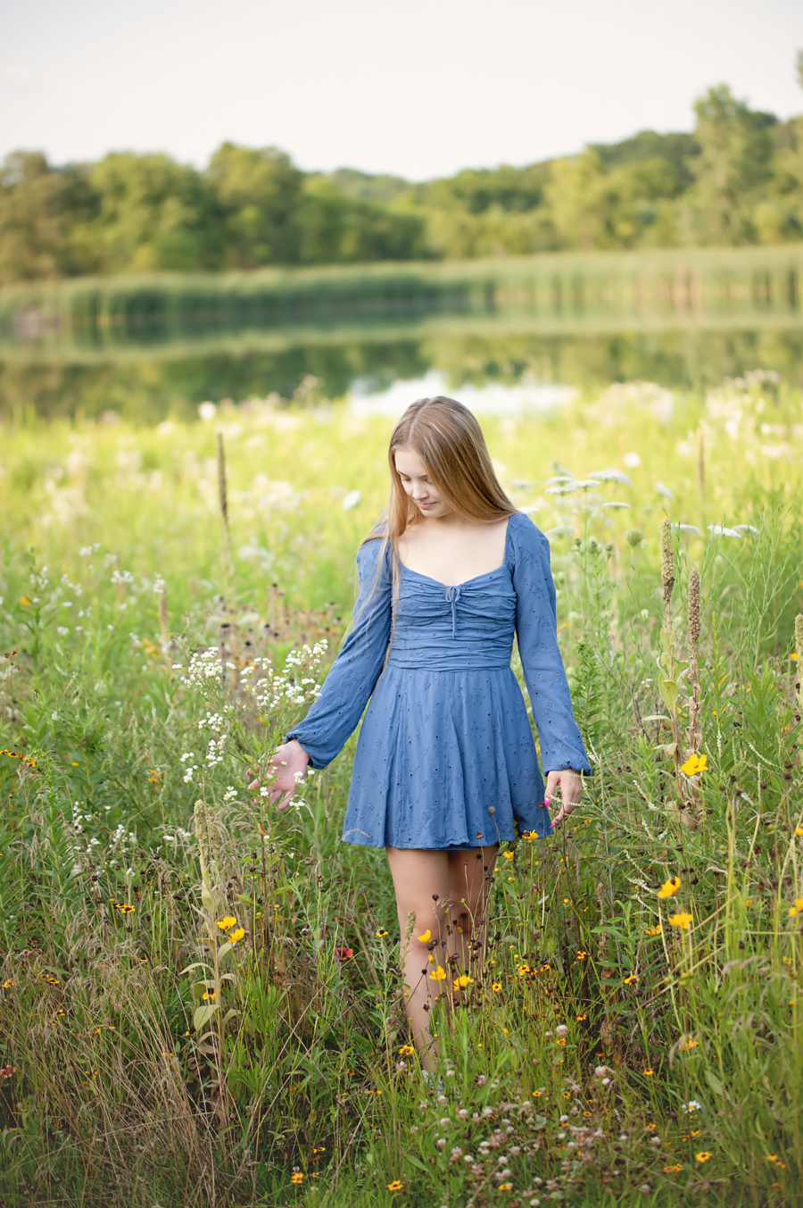 We timed this session at Country Heritage Winery just right to capture the sunflowers for this beauty! Aubrey is a senior at FWCS this year, and is loving the ICE program. She is currently pursuing cosmetology. Just check out her nails in the pictures! She is passionate about her family, and her furry companion dog Georgie and not-so-furry pet snakes. She is braver than me for sure! Such a sweet and quiet demeanor, Aubrey was easy to photograph. We found some great spots on the winery grounds, and then drove back to my house for the second half of the session. I actually really loved how they turned out, even just being in my back yard! The macrame swing was perfect with her dress, and walking through the trees and tall grass were breathtaking. But my favorite were at the very end on the gravel road with the red barn in the background! The lighting was just right, and Aubrey was letting loose and having fun with the camera.